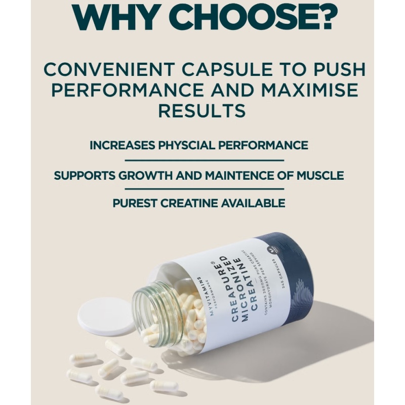 Creapure® Micronised Creatine delivers the ultimate boost to maximise results, whether you’re lifting heavy or preparing for a sprint start, our convenient capsules will push your performance.