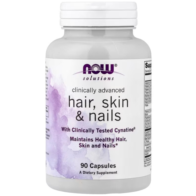 NOW® Solutions Clinically Advanced Hair, Skin & Nails is formulated to nurture hair, skin, and nails from the inside. This product features Cynatine®HNS, a revolutionary patented and bioavailable form of solubilized Keratin that can help you maintain full, lustrous hair and nails that are strong and flexible.* Cynatine® HNS can also help the skin to retain its youthful moisture and elasticity, as well as battle signs of aging associated with free radicals.* This product also has other critical nutrients necessary for the support and maintenance of the skin's healthy and youthful appearance.*