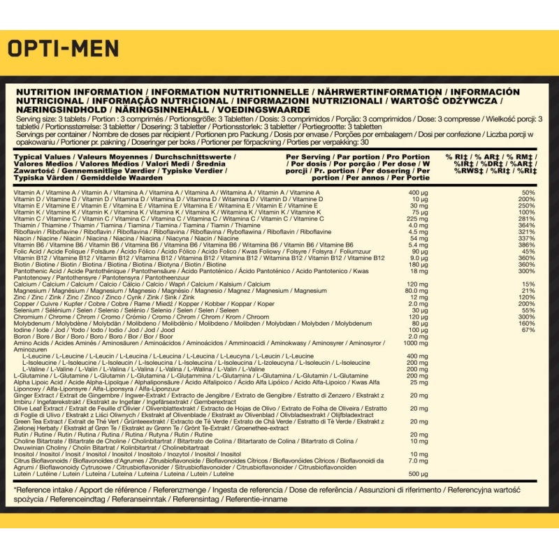 Vitamins, minerals and other important nutrients are the basic building blocks of the body. They are an integral part of our health and are responsible for the level of energy, performance and vitality of our body. Opti-Men is designed as a complete solution for optimizing and supplying all the necessary nutrients to the human body. One capsule contains up tu 36 active substances that form the basis of this multivitamin.