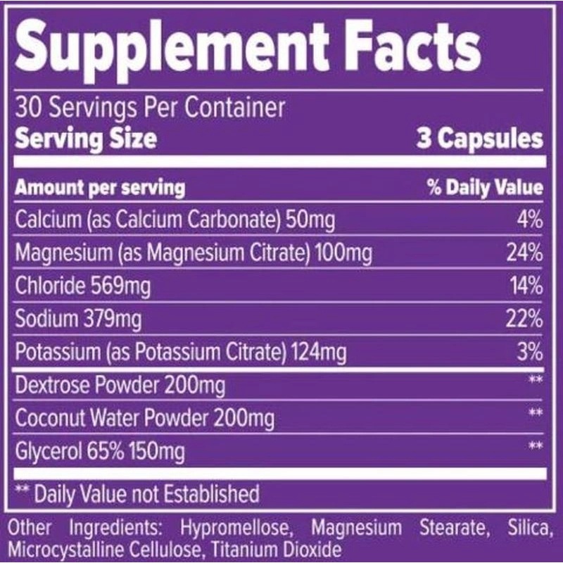 Iga kapsel sisaldab hoolikalt valitud elektrolüüte (nagu naatrium, kaalium, magneesium), millel on võtmeroll normaalse lihaste ja närvisüsteemi talitluse säilitamisel. Intensiivse treeningu ajal kaotab keha väärtuslikke mineraale ja nende taastamine aitab vältida krampe, jõukaotust ja sooritusvõime langust.